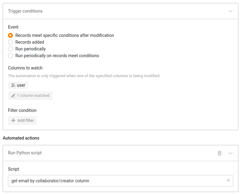 Some days ago, one of our users asked me if it is possible to get the email address from a creator/collaborator or last modifier column. He wanted to send emails to these users via automation, but these columns are not yet supported in email sending via automations.