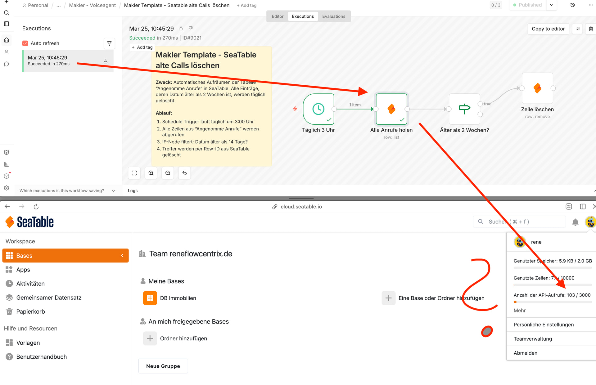 Das deutet stark darauf hin, dass ein aktiver n8n-Workflow mit dieser Base arbeitet. In diesem Fall ist es absolut nachvollziehbar, dass die API-Aufrufe entsprechend gezählt werden.