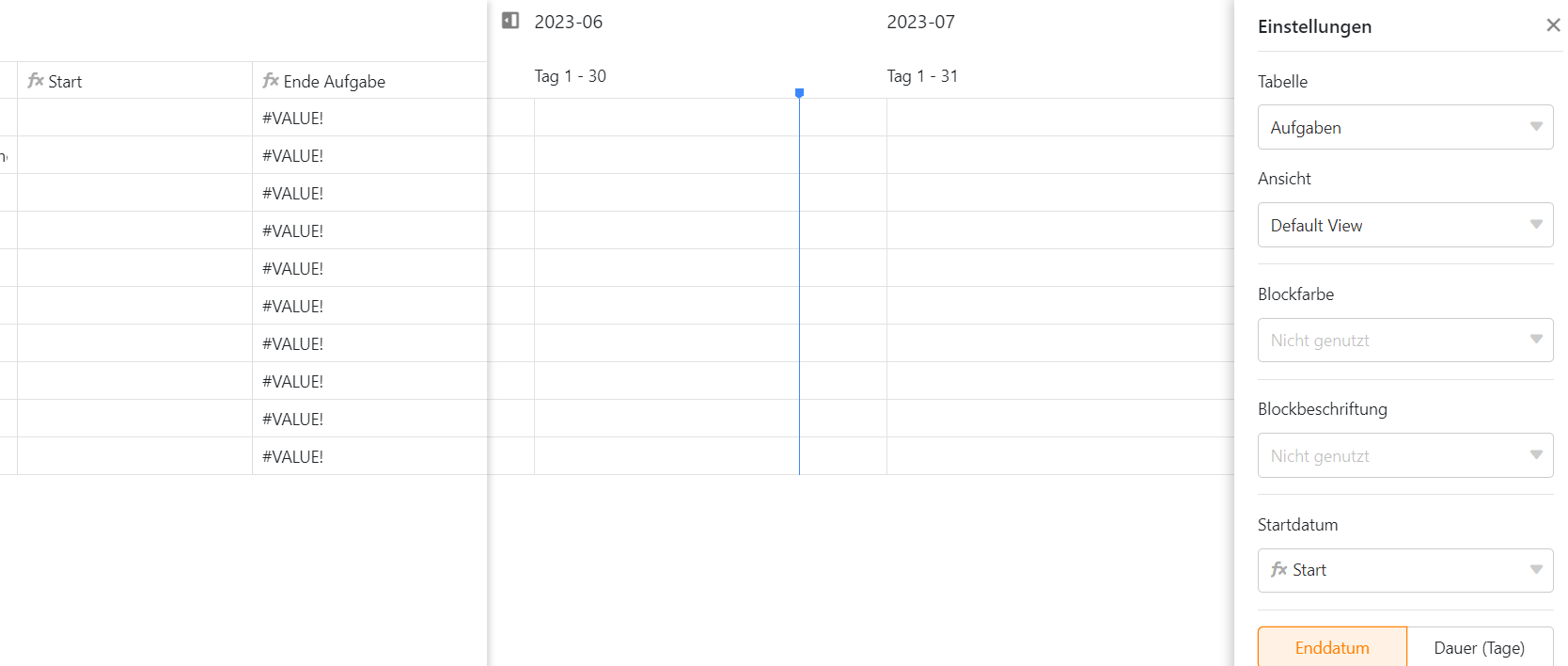 Hello I am trying to setup a project plan with seatable. Therefore I have to calculate dates out of a duration and a starting date of the first task in the project. This works now in the base. Now I want to add a timeline to the base. But unfortunately the dates calcualted and shown in the base do not occur in the timeline? I have read already the request timeline plugin cant select formula which should be solved since a while. For me my problem seems very equal but it is not working. I am using Seatable Cloud free.