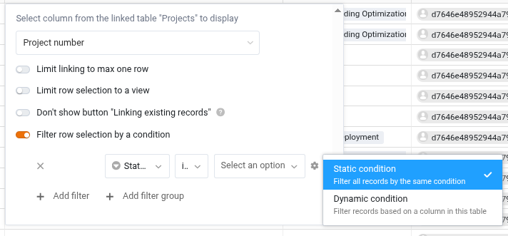 Aktuell kann ich die Auswahl von Links auf eine andere Tabelle auf eine Untermenge der Einträge einschränken, indem ich die Auswahl auf einen View beschränke. Dessen Filter sind aber fix eingestellt (View = “alle Einträge neuer als 1.1.2025“) und nicht dynamisch.