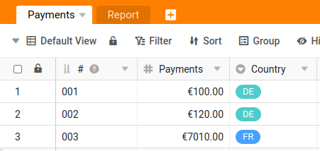 Now you want to create a report of the total payments separated by country. Something that looks like this: