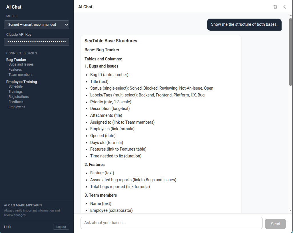 SeaTable 6.1 is right around the corner. We could include the AI Chat plugin as a public beta in this release — giving you early access while we continue to refine it based on your feedback.