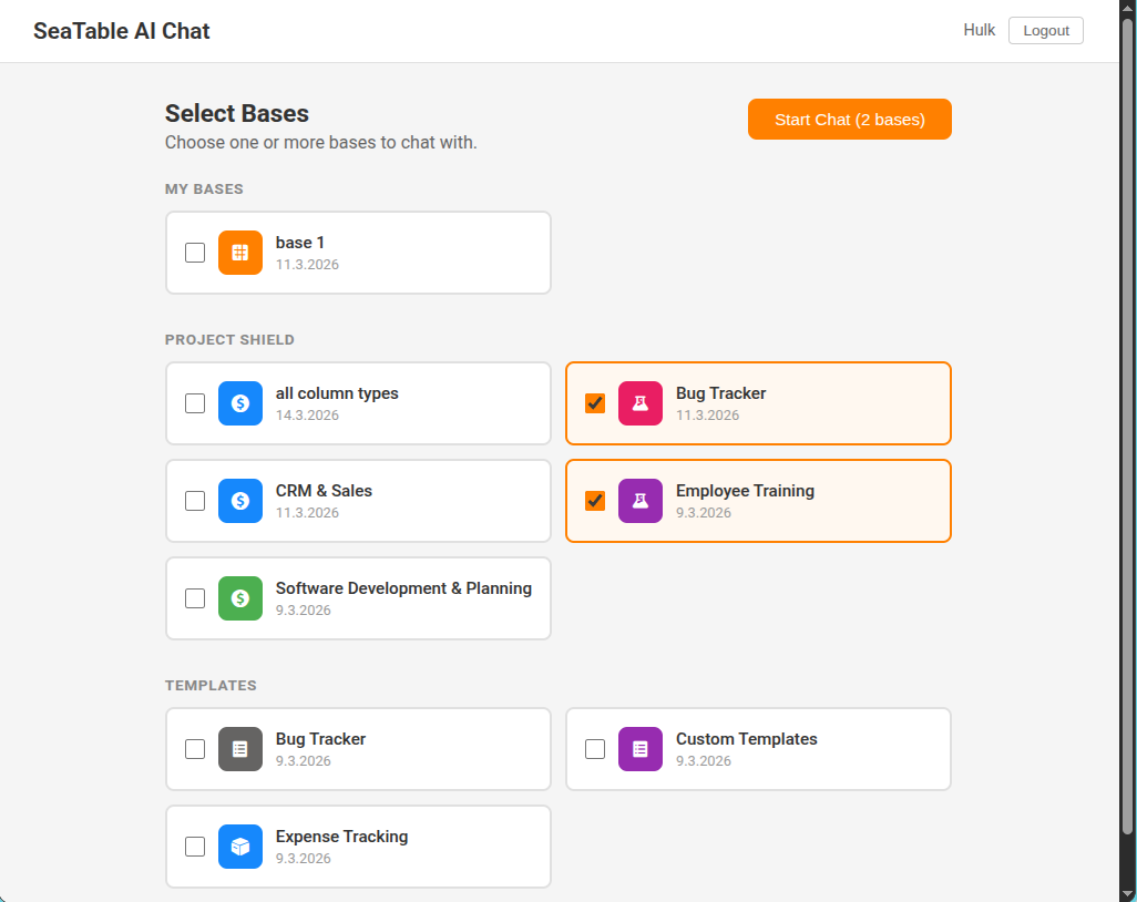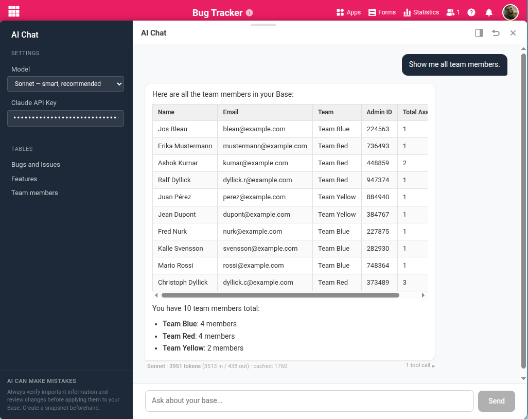 - As a standalone chat: A separate interface where you can work with multiple bases in one conversation. The trade-off: you don’t see your data directly while chatting.
