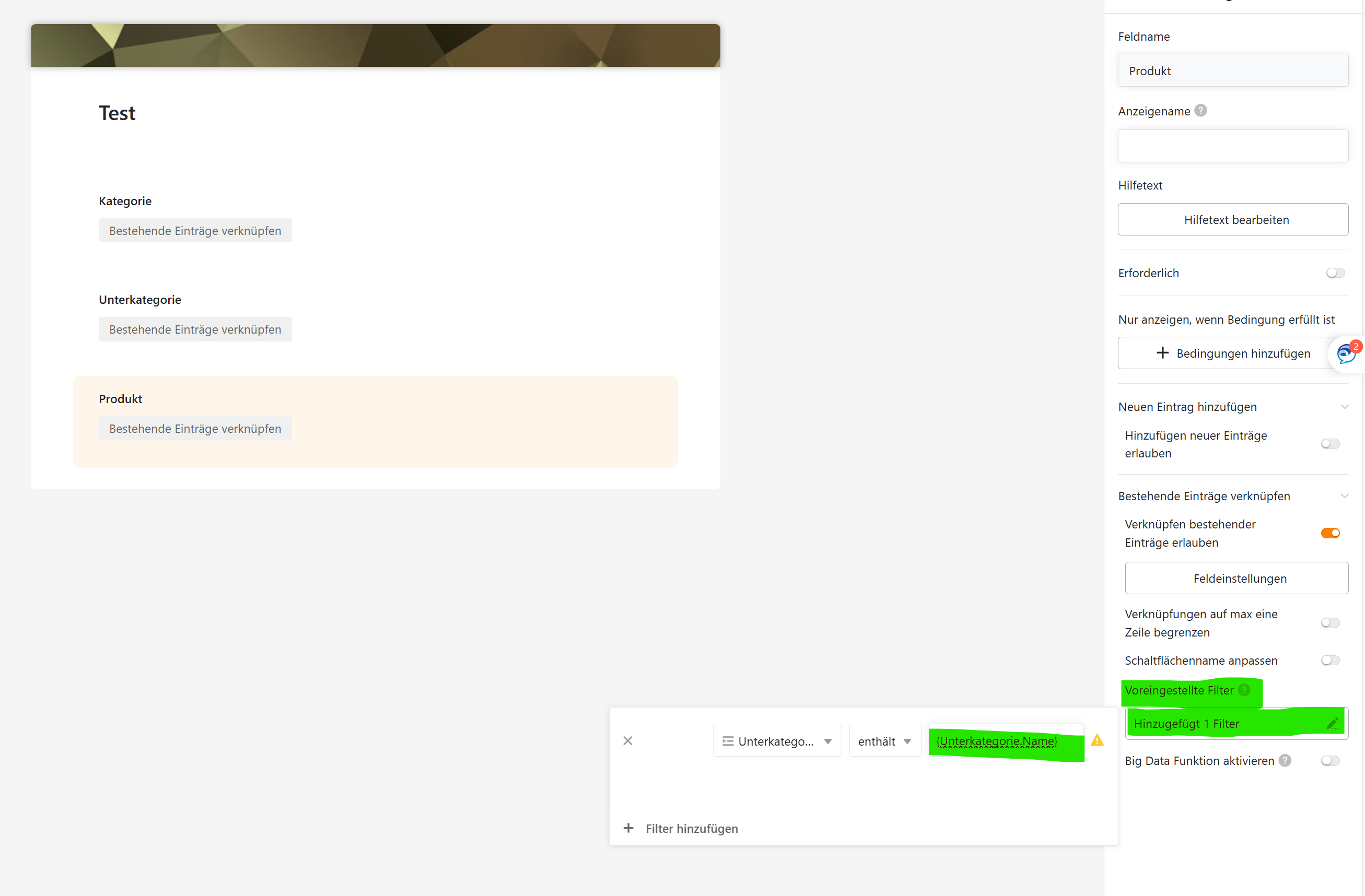 Und dann dachte ich mir, dass man im Webform (App) voreingestellte Filter auf Basis der Vorauswahl treffen könnte: